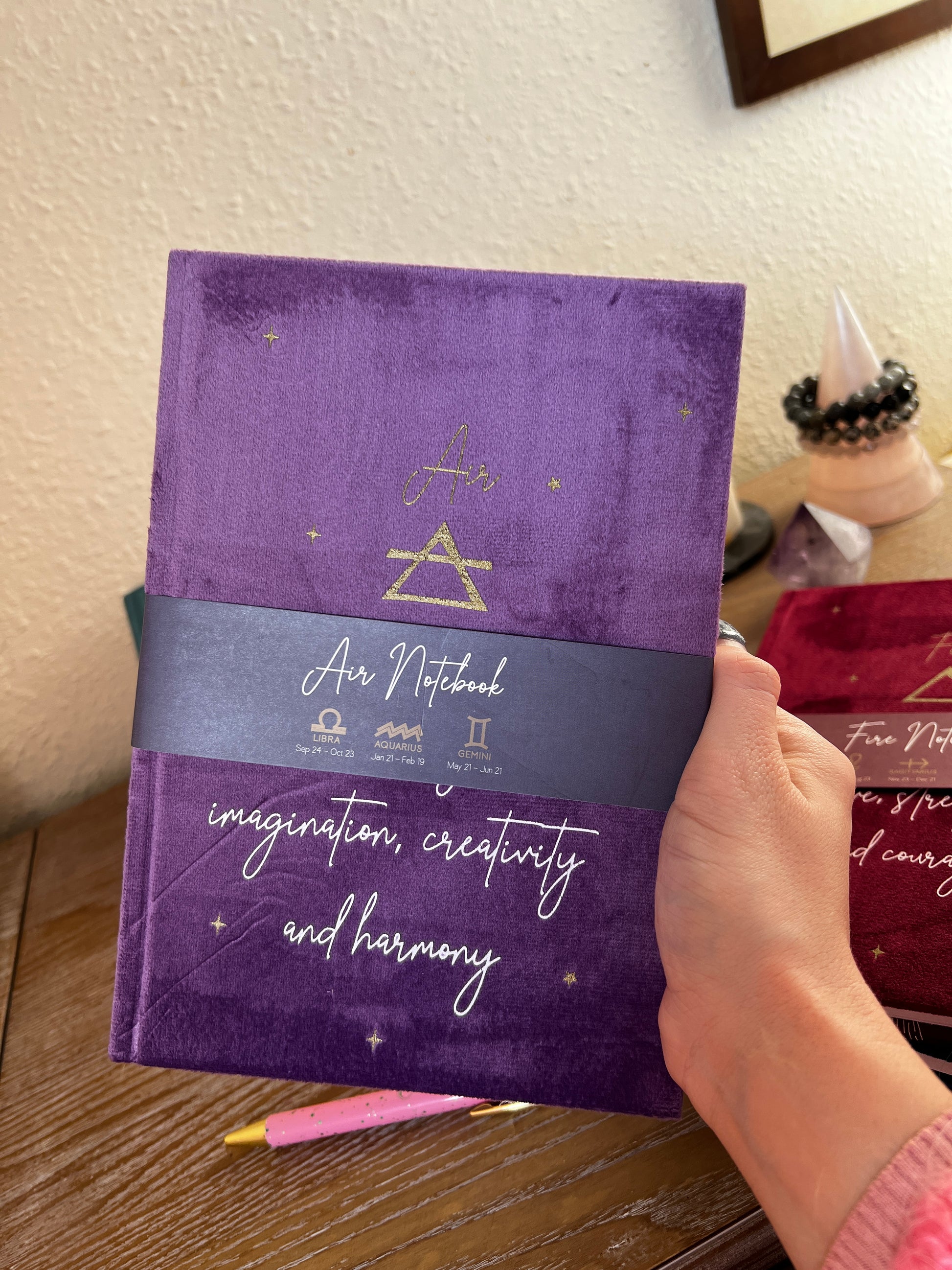 Start your celestial journey with these amazing velvet et covered notebooks with your very own zodiac elements, get journalling your spiritual journey.